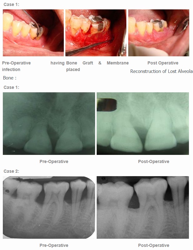 Grafting is the replacement or augmentation of the bone around the teeth. It is performed to reverse the bone loss / destruction caused by periodontal disease, trauma, or ill fitting removable dentures. It is also used to augment bone to permit implant placement, such as augmenting bone in the sinus area for implant placement, or augmenting bone to enhance the fit and comfort of removable prostheses, or to enhance esthetics of a missing tooth site in the smile zone. When one loses a tooth, as in an extraction, the surrounding bone collapses. To preserve this bone for future implant placement or for esthetics, a bone graft is used.